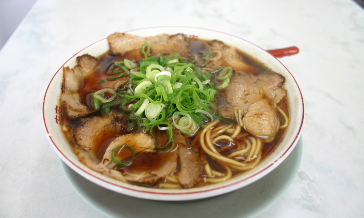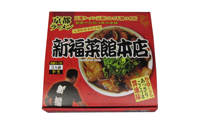 京都府京都市にある有名ラーメン店「新福菜館本店」の味を再現しました。シコシコのストレート中細麺と見た目は真っ黒ですがあっさりコク旨醤油スープです。