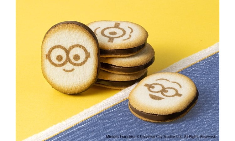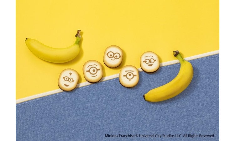 ミニオンの大好きなバナナがとろ~りとろけたショコラ。「銀のぶどう」のパティシエがミニオンたちを想ってつくったラングドシャクッキーサンドです。