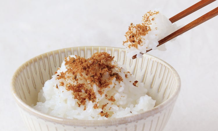 化学調味料を使わず、国産の選りすぐり素材をティーバッグに詰め込んだおちゃのこさいさいの『京のおだし』。おだし素材の中でも「鰹節」と「昆布」には、お鍋で3分煮出したあとも特に旨みが残っていて“おかかふりかけ”にして美味しく味わえると人気の商品です。そんな“おだし”で作った“ふりかけ”をイメージして「鰹節」と「昆布」に、椎茸と、ピリリとした香りのアクセントが京風味になる山椒を加えて、素朴な“おかか風ふりかけ”を作りました。