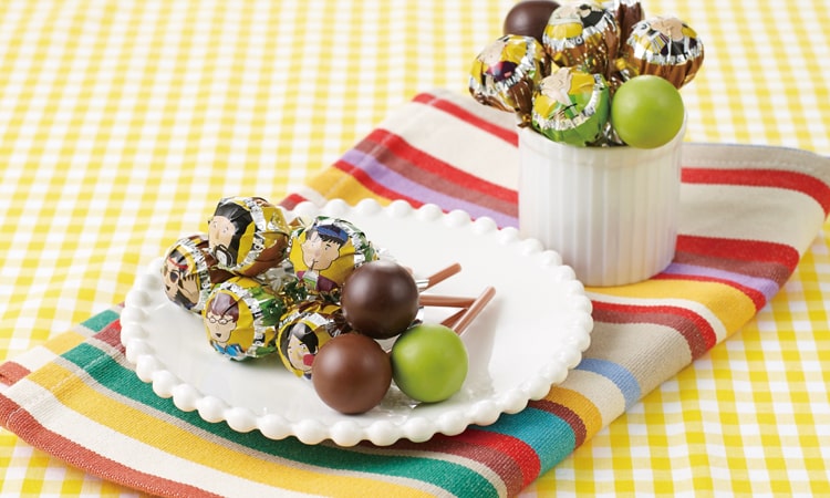 道頓堀の “ぼんぼん”(関西弁で“ぼんぼん”は良家の若旦那の意。)のイラストが楽しい、棒付きチョコレート。