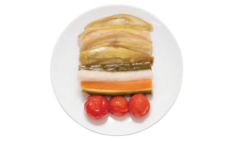 水なすピクルスには水なすはもちろん人参、大根、きゅうり、プチトマトと彩り豊かな5種類のお野菜を詰め込んでいます。