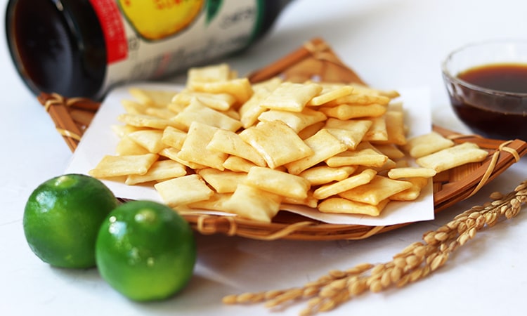 大阪の食卓でおなじみの旭ポンズがそのままアラレになりました。天然果汁を主原料として作られた旭ポンズは香り高く料理の味を引き立てます。また、日の出屋製菓は富山県産米に拘り米菓を作り続けてきました。そんな二つの拘りが出会って実現した旭ポンズアラレ。長年培われた技と味を是非一度ご賞味ください。
