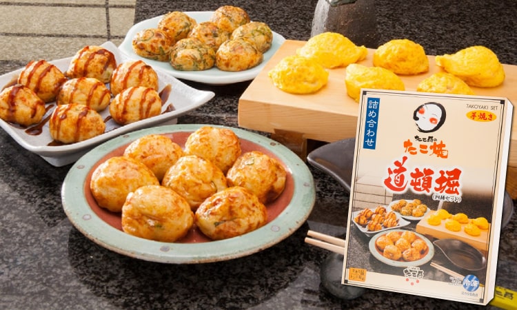 たこ昌の各種たこ焼&明石焼を、贈り物にも喜ばれるセットにしました。