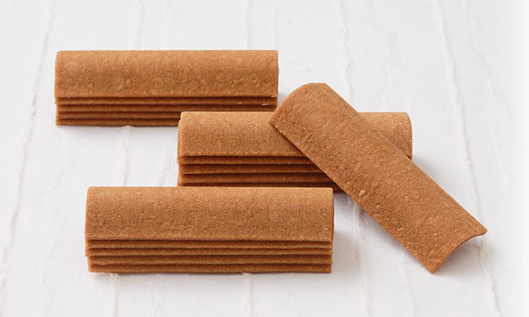 井筒八ッ橋は「六段の調べ」などで知られる、箏曲の祖、八橋検校に由来します。検校が教え伝えたと言われる京の堅焼き煎餅を琴の形に仕上げ「八ッ橋」と名付けたのが始まりでございます。パリッとした食感と、たちまち広がるニッキの香りをお楽しみください。