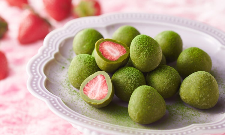 爽やかな苺の酸味と抹茶の香りが口いっぱいに広がる苺とりゅふです。