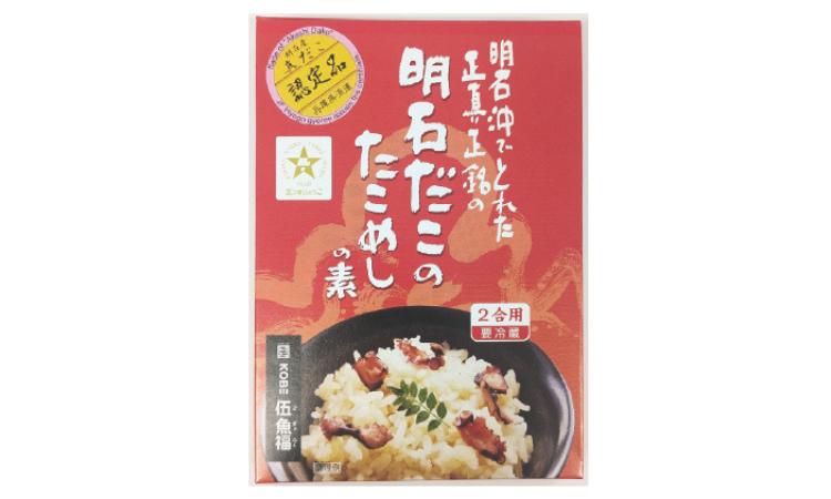 具材はあえて「明石だこ」だけ。お米に混ぜて炊くだけで、たこの旨みと食感が楽しめます。当商品は「五つ星ひょうご」認定商品です。化粧箱裏面には正真正銘「明石だこ」を使用しているという産地証明書を記載しております