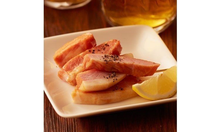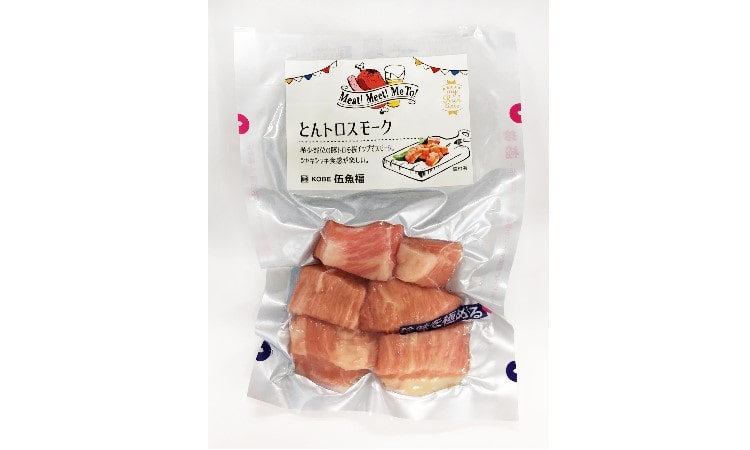 希少部位である豚トロを、ベーコン風味の漬け込み液に漬けて、桜のチップ(宮崎県産)を使用しスモークをかけて仕上げた商品です。